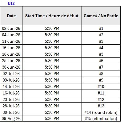 HORAIRE 2026 – M13 (2014-2013)