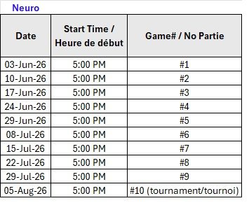 DISCLAIMER – Dates and times are subject to change, please refer to the website regularly. We will also notify participants via email in the event of a schedule change.